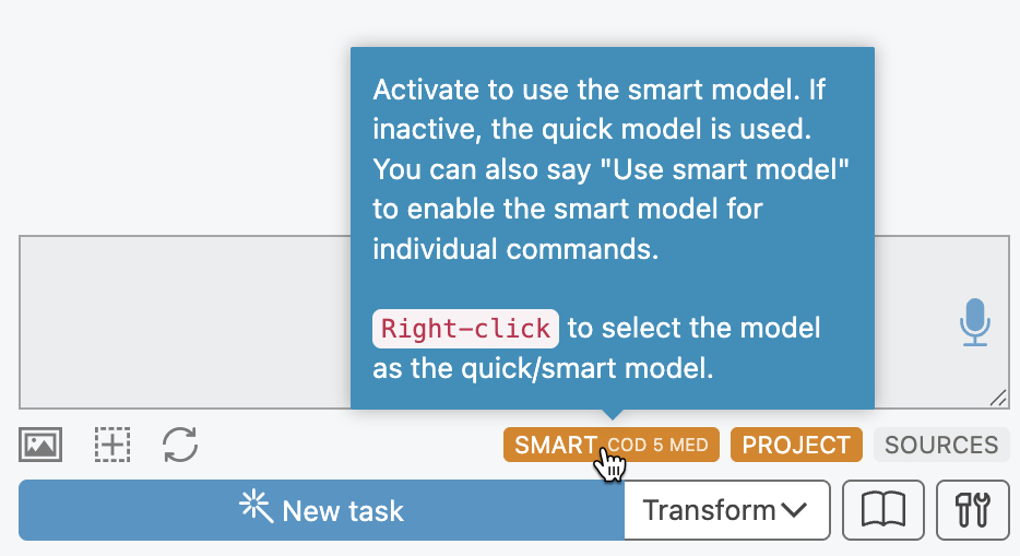 Right-click on the Smart / Quick toggle to quickly change the model: